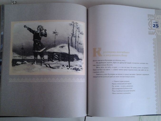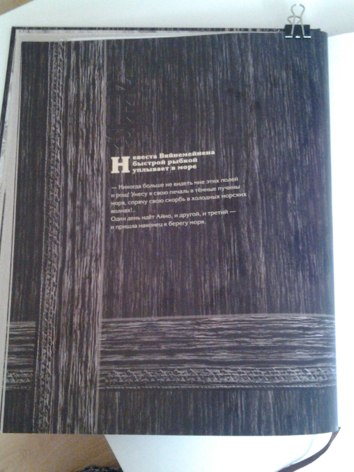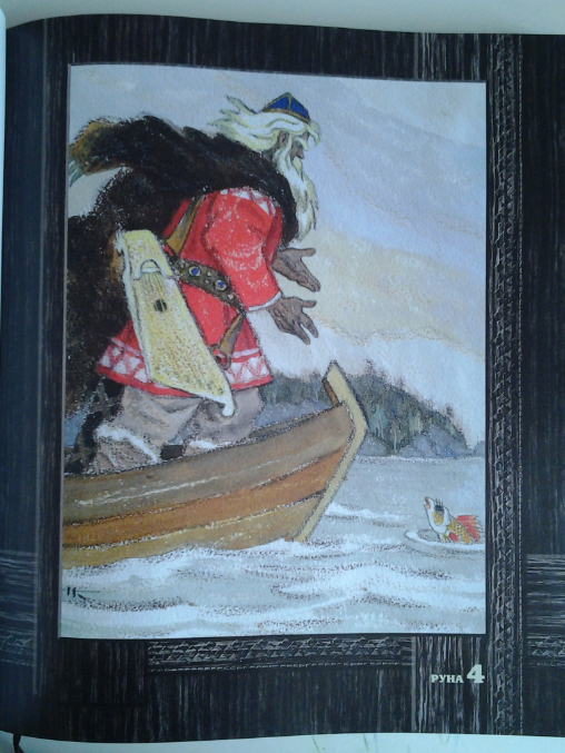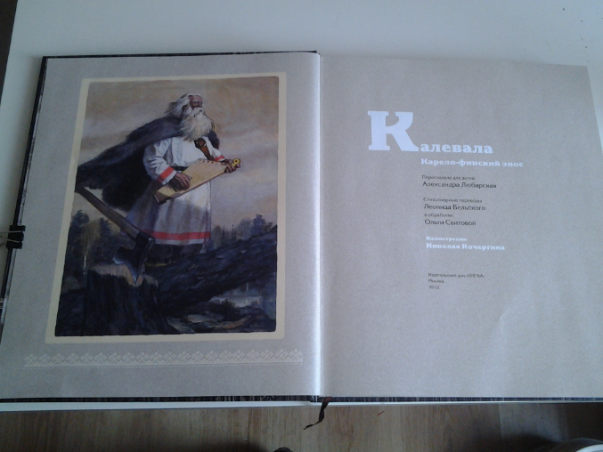 Это не книга, а книжище. Я иногда так завидую книгоиздателям, это наверное дико приятно жить и знать, что ты причастен к изданию такого шедевра. "Калевала" (ударение на первый слог) - это карело-финский эпос. Оригинал "Калевалы" был написан в стихотворной форме 164 года назад Элиасом Леннротом и содержит 50 рун. А издание Нигмы это детский вариант в прозе из 34 рун.