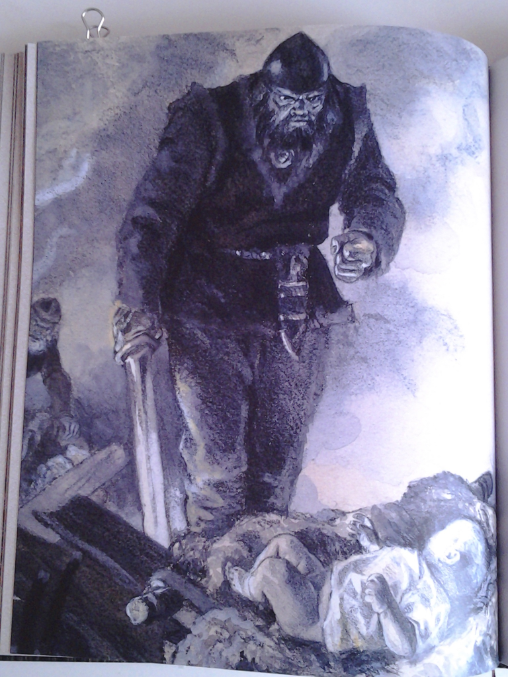 Иллюстрациям Кочергина я не могу найти достойный эпитет, настолько они хороши. Рисунки в двух вариантах - цвета сепии и цветные. Те, что цветные, очень схожи стилистикой с рисунками Кочергина к"Малахитовой шкатулке".