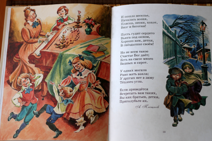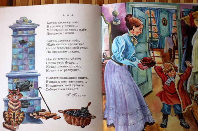 Из детства... не меньше. Нет, у меня её никогда не было. Но...я, наверное, всегда такую хотела) Вот именно с такими иллюстрациями, такими платьями, такими детками, такими стихами... Она не такая яркая, поверьте, это всё фотоаппарат. Но эта кварель, разводы, линии, я даже почувствовала, как горят свечи на картинках... И пусть в книге только пару стихов о маме, но все они, все, как ни спорь, должны непременно звучать именно из её любимых уст...