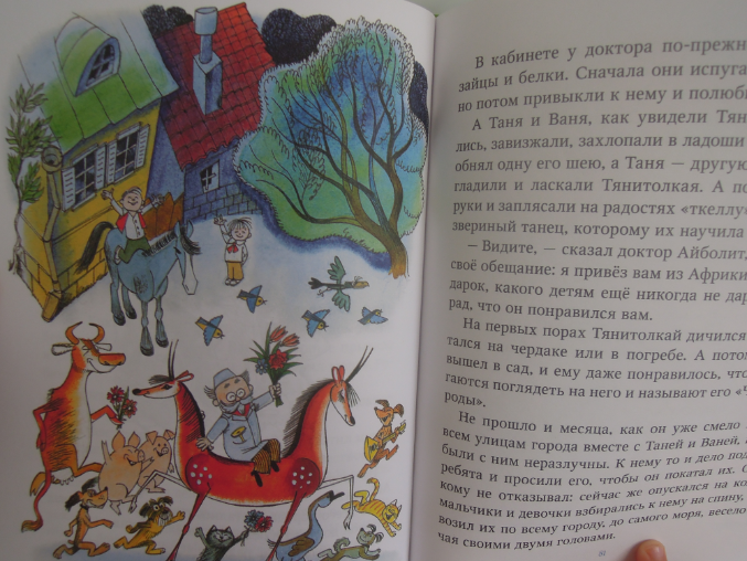 У вас никогда не возникало при прочтении детских книг ощущение дежавю? Я была уверенна, что не читала Айболита в прозе никогда. Но много раз прочитав тут, что дети приблизительно Никиного возраста эту книжку обожают, начала подумывать о покупке. Клала в корзину, смотрела на количество страниц, удаляла. Брала в руки в магазине, видела половину разворотов без иллюстраций, ставила обратно на полку. А поскольку мне казалось, что с сюжетом я не знакома, не верила, что трехлетний ребенок может слушать столько текста подряд, да еще и потом просить читать заново. Но тут звезды сложились, и книжку я таки купила.