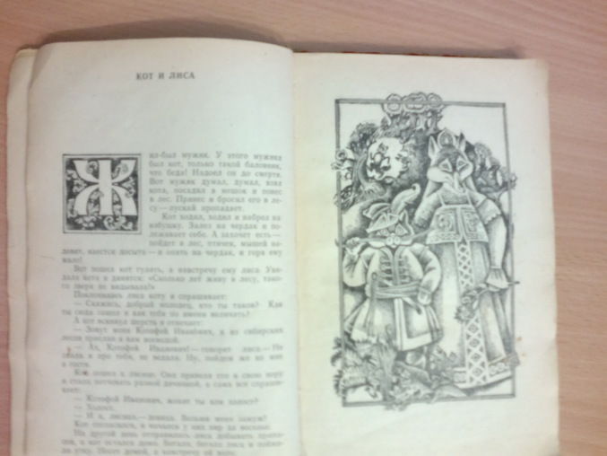 Это второй форзац книги. первый такой же. Половина форзаца и видимо по одной странице с каждой стороны отсутствует. Как следствие: я не знаю когда была издана книга, в каком издательстве, кто иллюстратор, автора она тоже не имеет, сказки то русские народные, не знаю её ISBN. В общем не знаю о книге НИЧЕГО, хотя вот она, у меня в руках. Знаю только содержание, и то, только половину видимо)