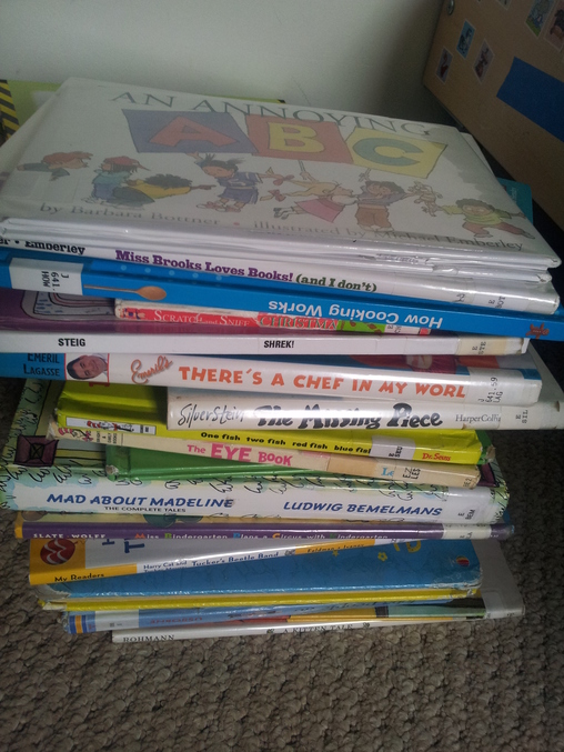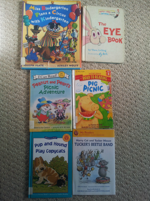вот наши последние из библиотеки. если брать перед выходными, то за выходные все читаем. а если брать с понедельника, то на целую неделю получается растянуть. ПОловина книг что она сама может прочитать.