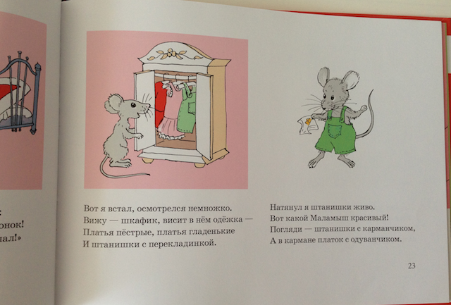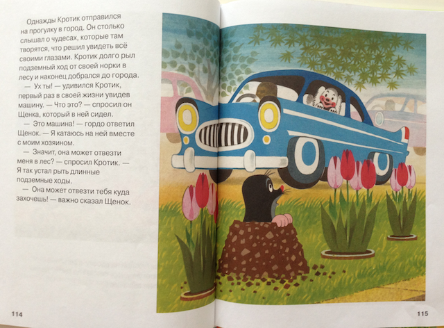 При первом же подходе к книге прочитали три части. Одна история прочитывается довольно быстро, и ты плавно переходишь к следующей; очень удобно. Больше всего понравились части про штанишки и автомобильчик.