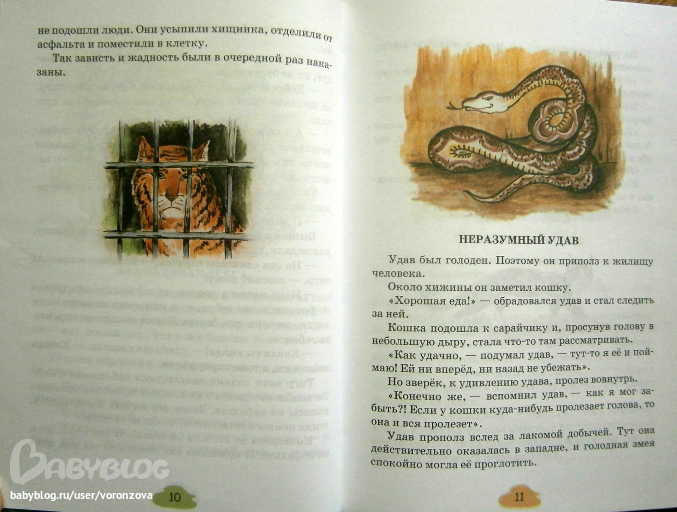 Во второй сказке очень находчивая зебра обхитрит завистливого тигра, в третьей удав, вроде мудрый и рассудительный, просчитается )))