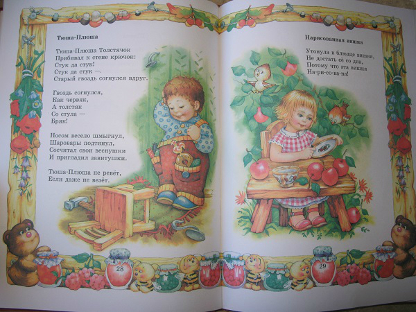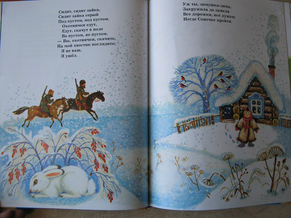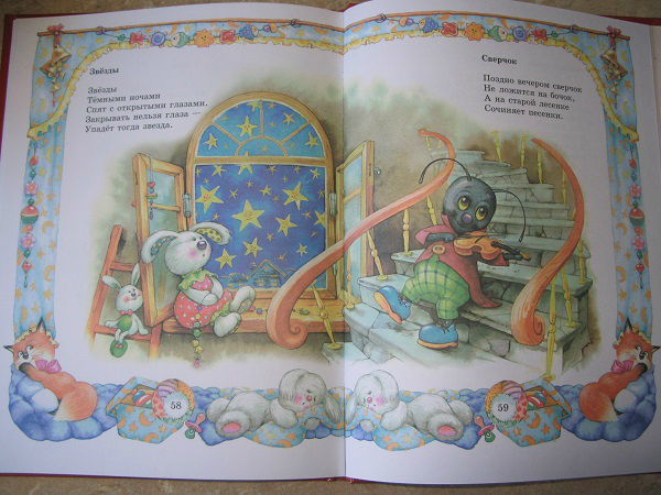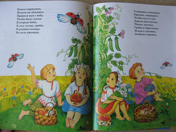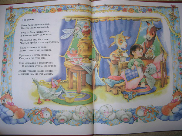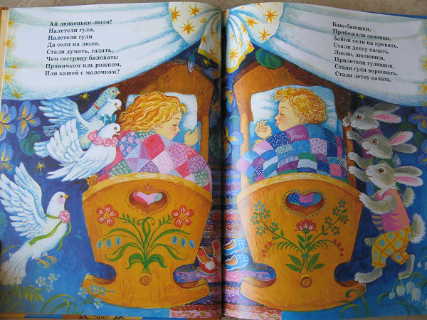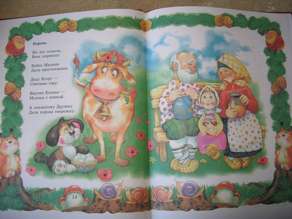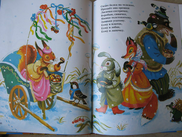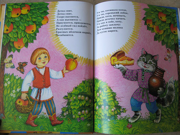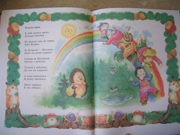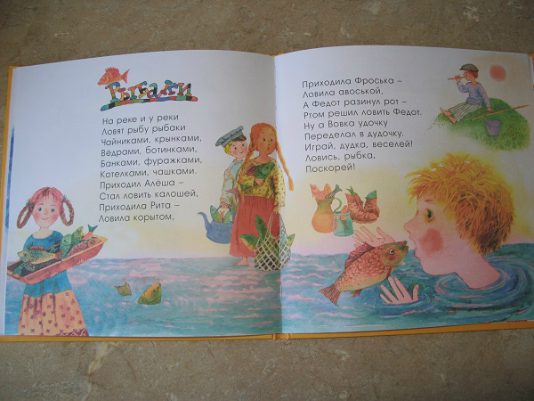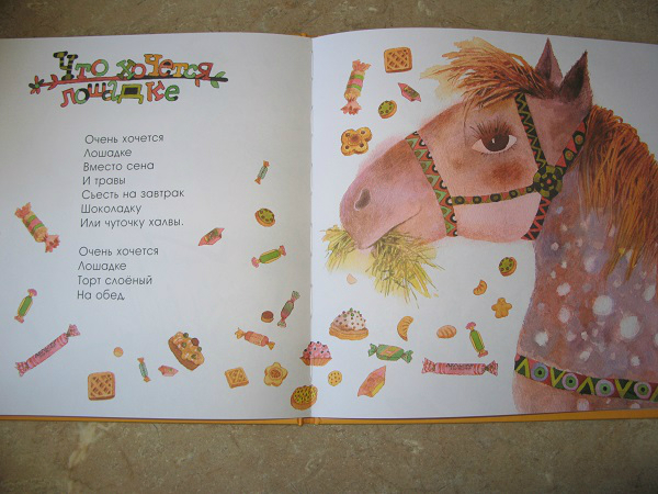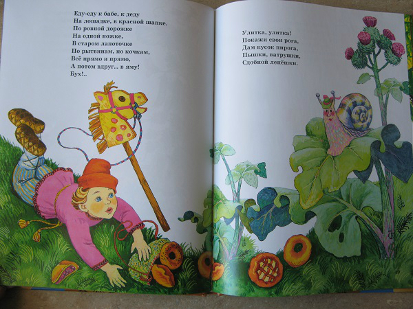 Но, это та самая книга, которую мы читаем не полностью. Два раздела: Колыбельные и Потешки иллюстрировал один художник, а вот Лепеталки другой, и дочка ну ни как не хочет их читать, даже моя хитрость не срабатывает!!! Бывает же такое)))