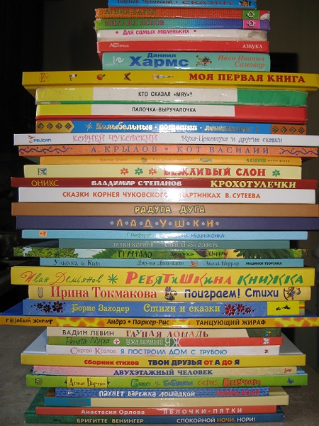 остались еще от сына, только Хармс появился совсем недавно, я отдала Лизе в полное ее пользование. На них она училась переворачивать тонкие странички. Большие мне жалко:( Могу дать только те, которые от старшего сына остались, а новые ни-ни, я жадина оказывается! Она их читает, когда ей хочется, а мама не может:(, а так же сидя на горшке))) простите за интимные подробности, но без этих книжек не садится, а если и сядет, то сразу кричит: "Цитать!!!" и пальцем в книгу))), пока не дашь ей, не успакоется, зато потом довольная ))) Вот такой любитель!!!