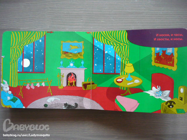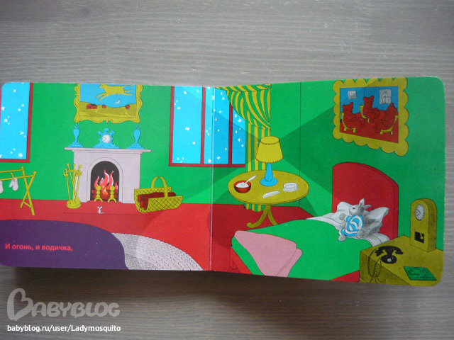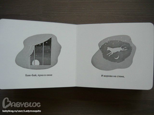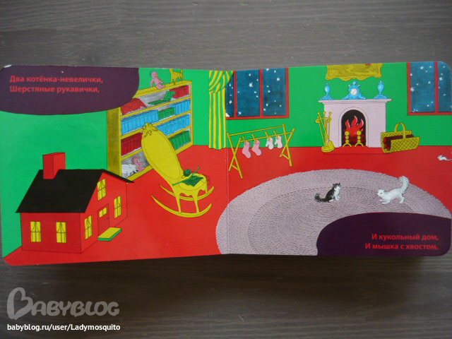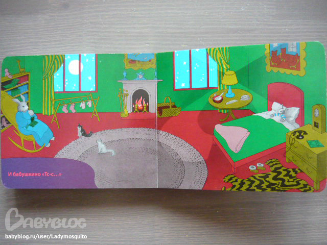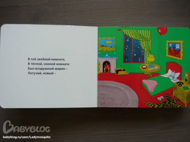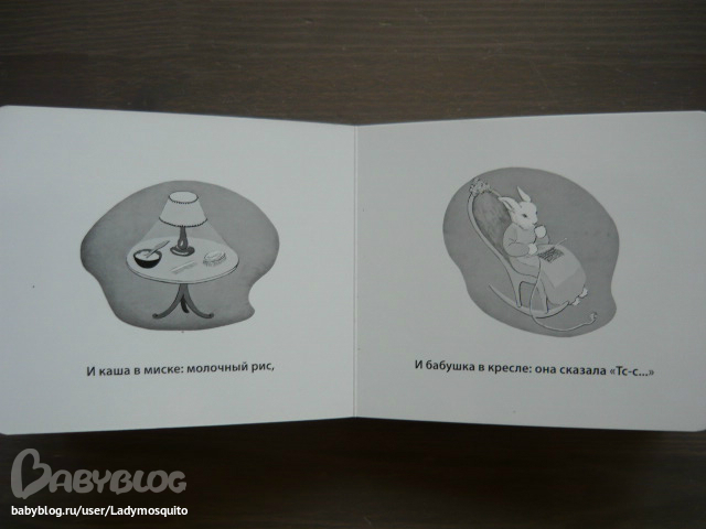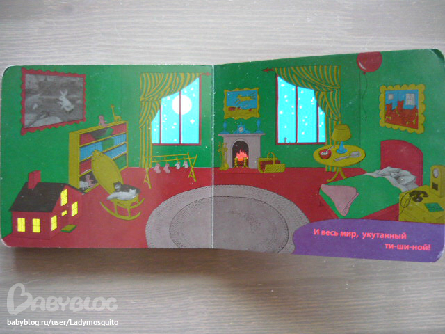 Бородицкая перевела эту книгу на русский язык. И я считаю, ей это удалось на славу! Когда я начала читать книгу вслух вечером после покупки, у меня пропал голос от эмоций, потому что это стихотворение волшебное, романтичное.... У него нет возраста, честно, даже папа наш впечатлился самим стихом. Это просто какая-то квинтэссенция домашнего уюта и покоя. И поверьте мне, цвета иллюстраций, композиция картинок, черно-белые вставки, любопытная мышка, постепенно темнеющие цвета и восходящая луна в сочетании со стихами - это идеальная засыпательная книга, настраивающая на покой и сладкие сновидения.