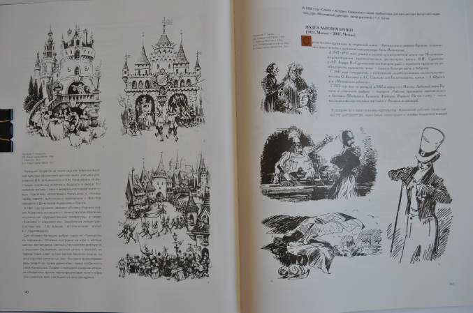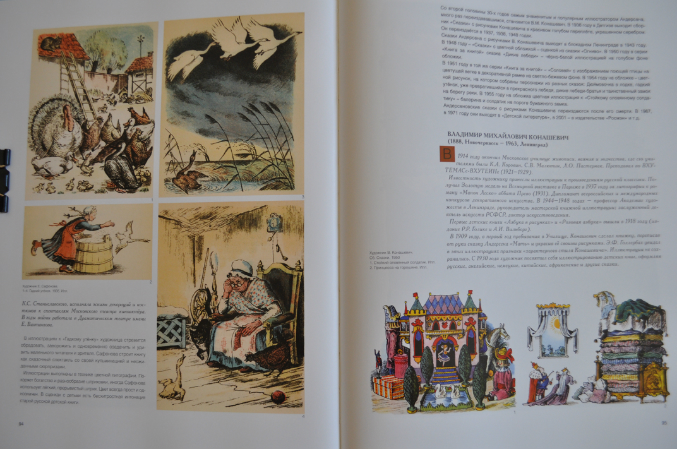 Создатели книги Лидия Кудрявцева и Лола Звонарева проделали колоссальную работу. Низкий им поклон! Сколько имен им удалось собрать под обложкой этой книги - не только отечественных, но и зарубежных художников. Представлены даже те, кто проиллюстрировал всего одну сказку. Единственно, я очень огорчилась, не увидев имени Антона Ломаева, не знаю по какой причине его работы не вошли в эту книгу.