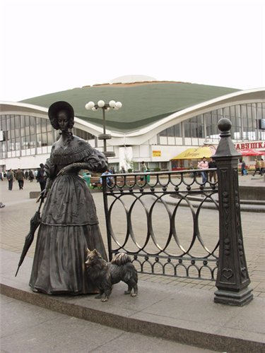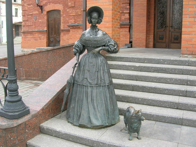 Как я уже упоминала, памятников «Дама с собачкой» очень много. Некоторые из них - просто дамы, просто с собачками, не имеющие никакого отношения к героине Чехова по замыслу их создателей, разве только народная молва пытается их «приблизить» к писателю (в Пензе, в Гомеле, в Липецке, в Астрахани и т.д.). Но белорусская «Дама…» самая «чеховская» из них)))