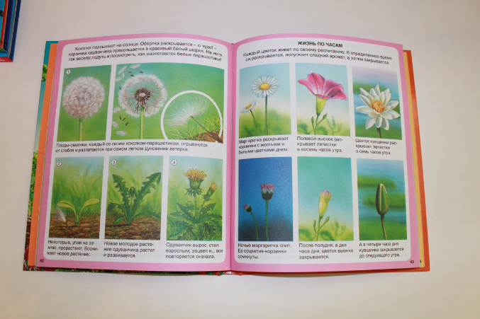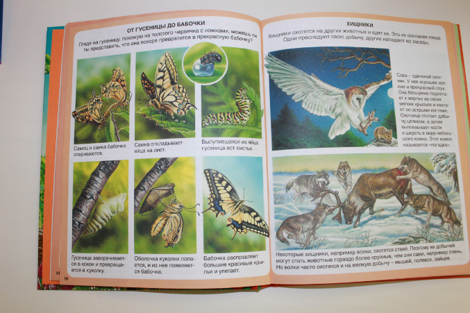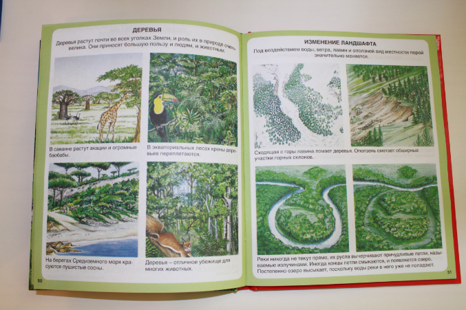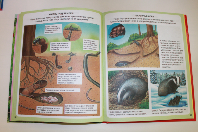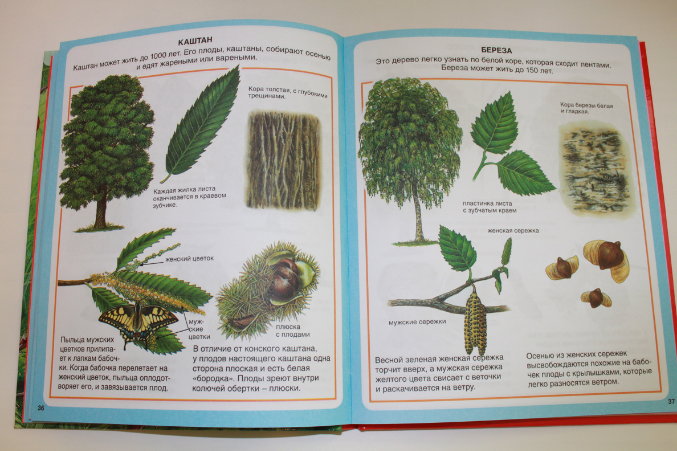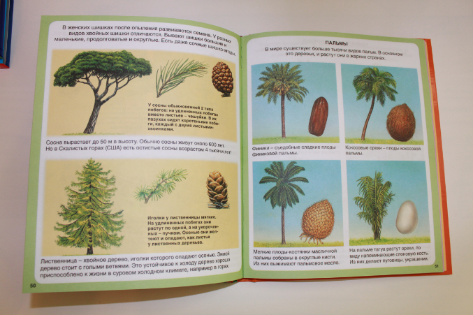 В целом, книги мне понравились: реалистичные изображения животных, деревьев, окружающего мира - все лего узнаваемо, информации немного, но почти достаточно для нашего возраста (почему почти - напишу ниже:-)), картинки крупные, многие "объекты" изучения "качуют" из книги в книгу, но это я считаю плюсом, поскольку информация о них разная.