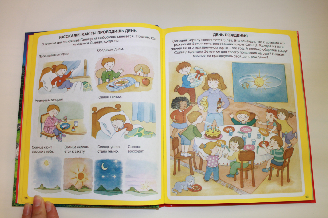 Из книги можно узнать о том, что такое Вселенная, теорию о том, как появилась Земля, что такое сутки, год, что на Земле есть горы и пустыни, моря и ледники, о том, как погода и вода связаны между собой, кто живет на Земле - животные, какие национальности, какие города существуют. Интересная книга, обо всем кратко, но понятно и увлекательно.