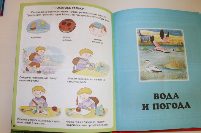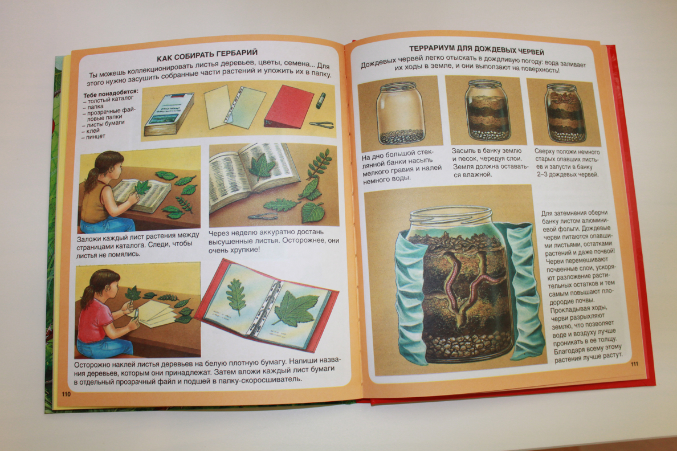 В книге рассказано, как выглядят деревья в разное время года, и про камни, и погоду, и про горы, плюс в конце каждого раздела есть небольшие задания-игры для детей (такие задания есть в каждой книге этой серии).