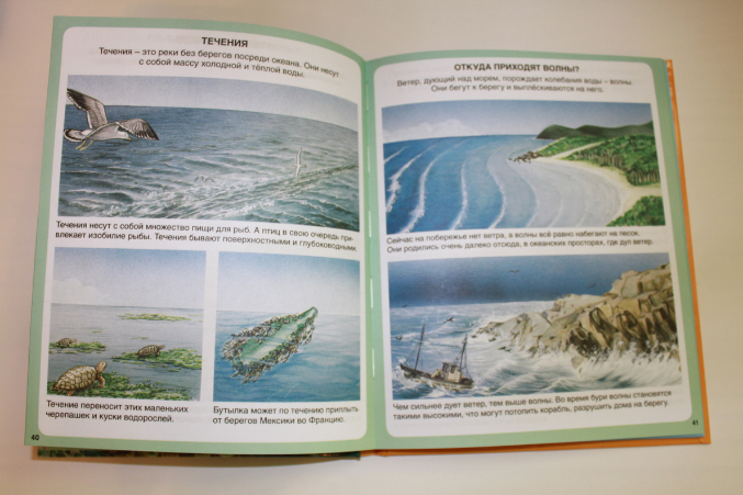 А вот, что мне не очень понравилось именно в этой книге- при описании некоторых интересных фактах, животных и прочей информации про океаны и моря, на мой взгляд, чуть не хватает подробностей, например, в книге рассказно о том, что такое Острова Галапагос, но ни слова о том, где они располагаются. Вот такого рода небольшие "недосказы" встречаются в каждой книге этой серии. Может, конечно, я очень придираюсь и смотрю взглядом взрослого человека, но мне это не очень понравилось))
