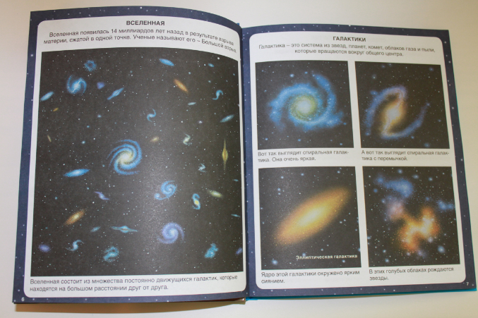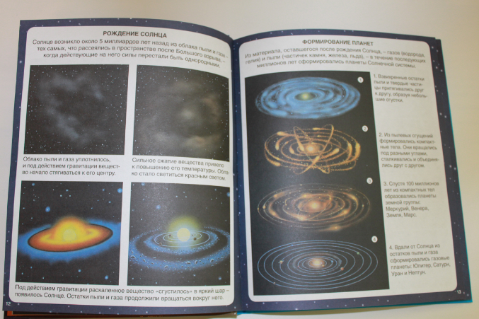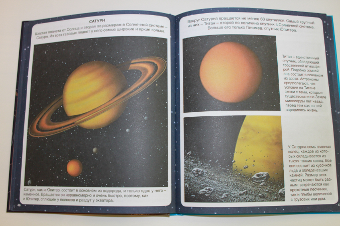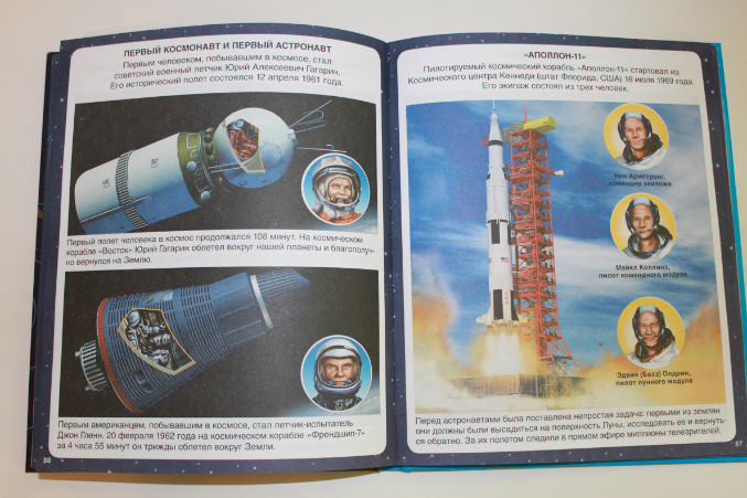 Интересно рассказывается о космосе, о планетах, о взамосвязи космоса и Земли, целый раздел посвящен полетам в космос, но там все "американизировано", есть лишь пара слов про Гагарина. В книге даже упоминается про НЛО:-)