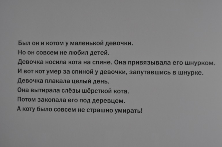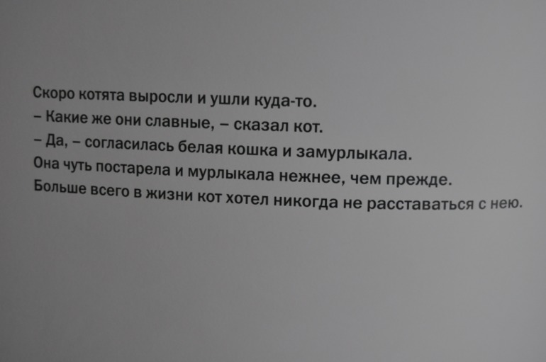 И тут должен быть хэппи-энд: они жили долго и счастливо и никогда не умирали... НО... однажды белая кошка тихо умерла рядом с котом. И он впервые в жизни заплакал. А потом и сам "незаметно стал неподвижным".
