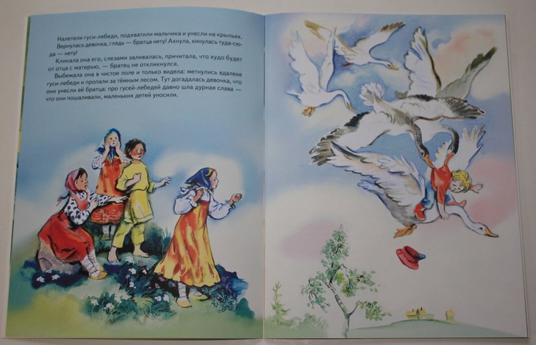 «Гуси-Лебеди» в пересказе Алексея Толстого. Знакомая всем сказка и такой знакомый текст. У кого в детстве был вот такой томик, сразу его узнает.