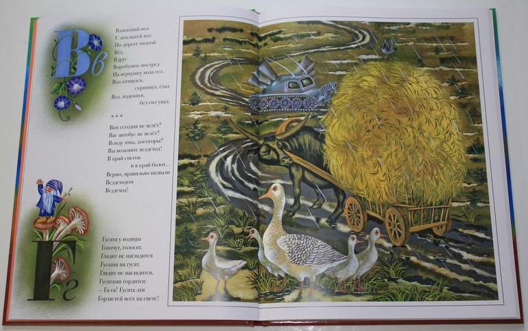 Муж читал ребенку «Гусей» и вдруг слышу: «Ну наконец-то нормальный текст, а то же читать было не возможно. И рисунки хорошие. Почему раньше эту книжку не купила?». Надо сказать, что это высшая мужнина степень похвалы в адрес детских книжек.