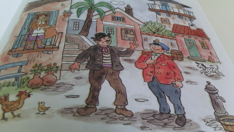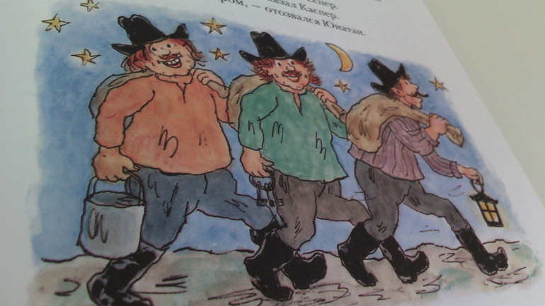 . А как вам ноги у героев нет ощущения, что они не правильные, смешные :))? А сказка приятная, очень неспешная. Посуда есть такая в Норвегии, эти герои у них почти как у нас Чебурашка, и Кротик в Чехии, поэтому даже посуда с разбойниками :)).