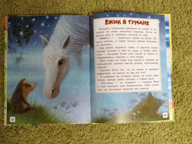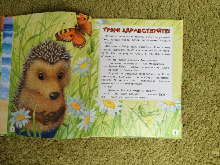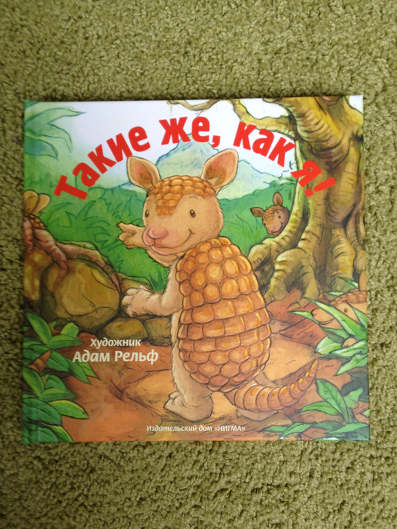 Моему сыну очень понравилось гладить пальчиком рельефные элементы и искать на каждой картинке спрятавшихся броненосцев. Книгу можно было купить гораздо раньше, с 1.5 лет точно.