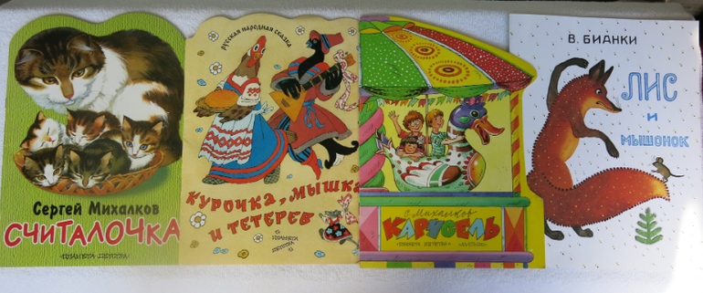 "Считалочка" от Сергея Михалкова. Иллюстрации класс! Текст прелесть! Еще и считать научимся)Котики такие реалистичные можно и усики, шерстку, лапки и все-все рассмотреть (тем более живой кошки у нас нет). У каждого котенка свой характер и свой разворот страниц.