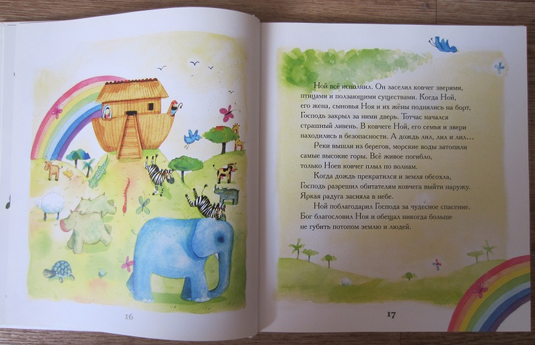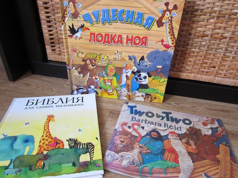 «Библию для самых маленьких» я подарила Владу ещё зимой. Очень мне понравилось это издание. Хорошо, что его допечатали, и уже не один раз. И спасибо, что наше сообщество заставило обратить на неё внимание, а потом девочки даже подсказали, где купить (так как в интернет-магазинах тем летом книга отсутствовала). Библейские сюжеты, пересказанные для малышей, сопровождаются очень приятными иллюстрациями.