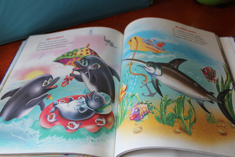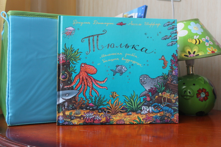 1.Тюлька маленькая рыбка и большая выдумщица, книга хорошая, ребенка сразу привлекло к ней великолепная яркая иллюстрация, да и тематика воды нам очень нравится, но вот текст на мой взгляд нам еще рановат, читая сынишке понимаю что не все он понимает, да и больше просто смотрит картинки и я ему их комментирую.