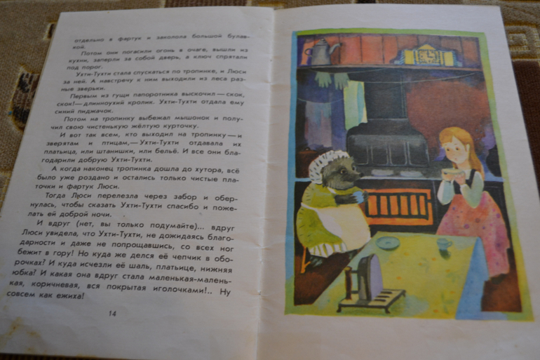 Часто встречаю эту книгу (переизданную конечно) в сообществе.И как мне кажется, чаще всего её покупают из-за ностальгии))) Но у меня почему-то нет к ней столь тёплых чувств.По мне - обычная история.Сыну пока не читаю, мне кажется рано.Да и вряд ли его заинтересует, как ежиха платочки стирала...
