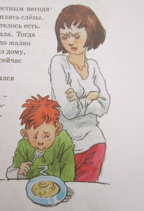 «Смотри, какой молодец! Я догадалась: у тебя не было мяча и ты играл батоном. Я всегда говорила, что ты сообразительный ребёнок. Но я куплю тебе мяч. Может быть, тебе иногда захочется поиграть мячом. Только ты не думай, что я тебя заставляю играть мячом. Если хочешь, играй батоном».