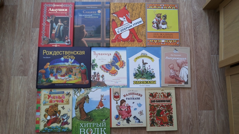 Очень много читали от года, особенно зимой. Сейчас, конечно, спад т.к. целыми днями на улице.Многие из этих книг читаем и сейчас. Любимыми были: Ловкие пальчики, Купашкина книга, Моя первая книга, потешки и Колобок. Ближе к 1.5 годам Путаница и Лиса и волк. Еще Виммельбухи, но забыла их сфоткать.Хитрый волк и Ладушки в основном просто рассматривали.
