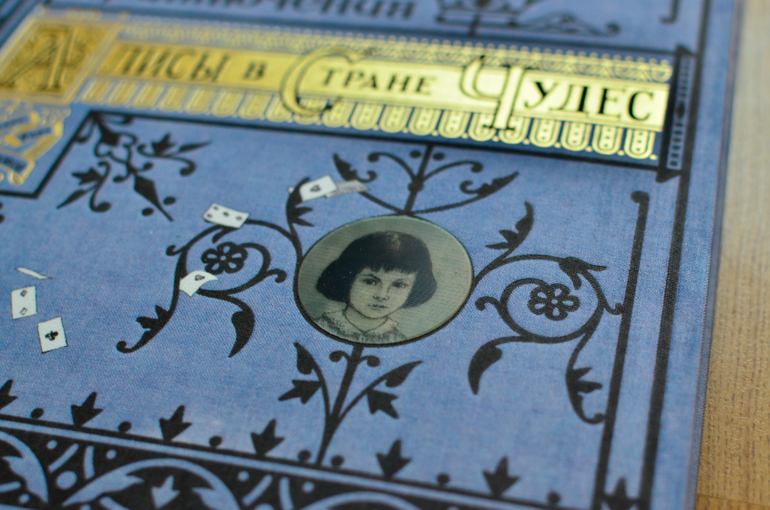Чудеса начинаются уже с обложки: если рассматривать медальон под разными углами, фотографию девочки сменяет рисунок. Дело в том, что когда Чарльз Лютвидж До́джсон (Льюис Кэрролл) готовил в подарок Алисе рукописную книгу, на последней странице он нарисовал портрет девочки, но остался недоволен им и аккуратно заклеил фотографией, рисунок случайно обнаружили только в 1977 году.