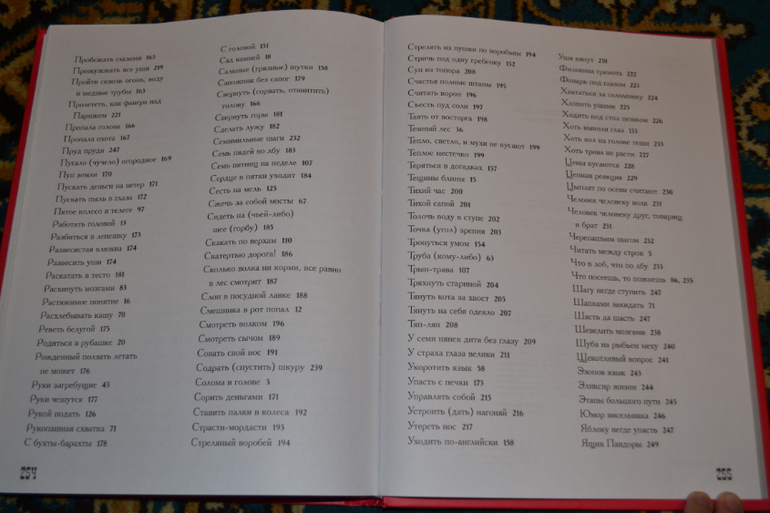 Что касается содержания, то в книге великое множество крылатых слов и выражений!Уж не знаю, всех или нет, но основных, часто употребляемых в нашем обществе, точно!И есть даже такие, которые я не знала ранее ("Аника-воин", "белые мухи", "держать в чёрном теле" и другие).К каждому выражению приводится стихотворение с юмором и словарное пояснение.Мне кажется, этого вполне достаточно, чтобы ребёнок понял смысл выражения/слова и запомнил его.