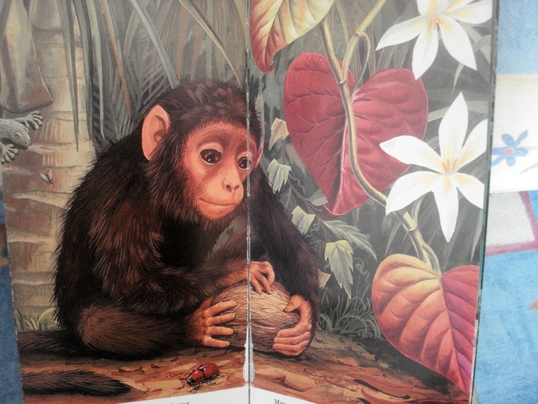 И ещё одна находка, попалась в магазине Книжный Кит в нашем городе - книжка про маленькую обезьянку. Автор - Франсуа Крозе. Прекрасные иллюстрации, твёрдый переплёт, немного текста - то что надо для малыша! Цена - 90 руб. Тогда как в интернет-магазинах http://www.ozon.ru/context/detail/id/18400363/ - около 300 руб. Маленький недостаток - на двух разворотах при полном раскрытии место склейки расходится... Из-за этого, видимо, и произошла уценка... Но ничего страшного! Книга всё равно чудесная!