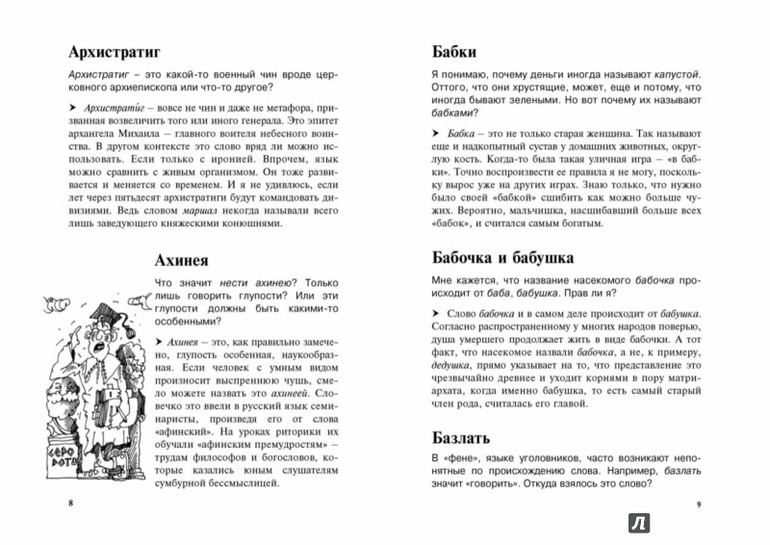Читатель узнает о том, кто является автором таких высказываний, как "деньги не пахнут", "простота хуже воровства", "заткни фонтан", "буря в стакане воды" и др., проследит за рождением и развитием слов "панталык", "скрижаль", "колымага", "катавасия" и проч.