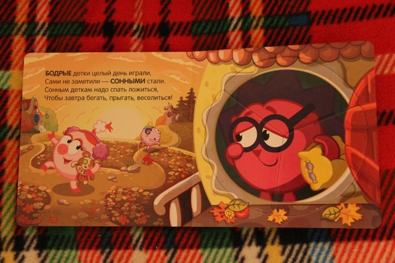 Еще сегодня знакомились с книгой- пазлом изд. " Умная Маша" серия Смешарики " Все наоборот". В книге всего 4 разворота, на каждом по пазлу. Нам очень понравилась.