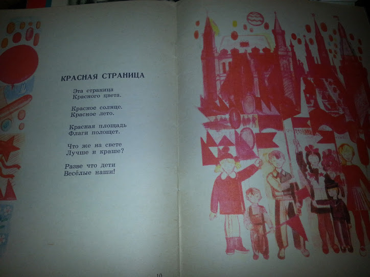 Есть и красная. Тогда ещё СССР был. Младший сказал, что красные флаги-это, потому что все счастливы. Красный цвет-это праздник)
