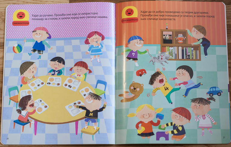 Конечно, всему виной моя невнимательность в магазине. На первый взгляд книга кажется очень удачной. Ее авторы указывают, что выполнение заданий разовьет в моем ребенке так называемый коэффициент эмоционального интеллекта , т.е. способности контролировать собственные эмоции. Это, по мнению авторов, поможет ребенку жить в ладу с другими людьми. Книга рассчитана на возраст 2-3 года. Кстати, в Сербии это переводное издание, оригинал корейский. Есть в этой серии еще две книги, которые направлены на развитие других видов интеллекта. Книги еще и отличаются по возрасту (2-3 года, 3-4 и 4-5 лет).
