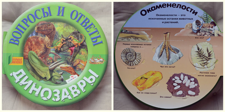 1. «Вопросы и ответы. Динозавры» - книжка с окошками. Чтобы ее купить, нужно, чтобы ребенок был увлечен темой динозавров. Там есть вопросы, а в окошках ответы на них. Марк книжку эту любит, но в must have я бы ее на записала)