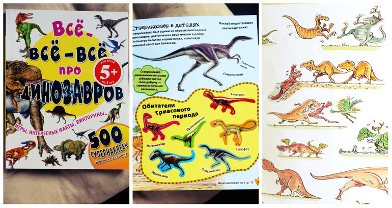 1. «Наклейки-конструктор. Динозавр» - если ваш малыш любит дино-тему - эта книжка должна у вас быть! Она для малышей, с несложными заданиями, но очень нравится маленьким палеонтологам!