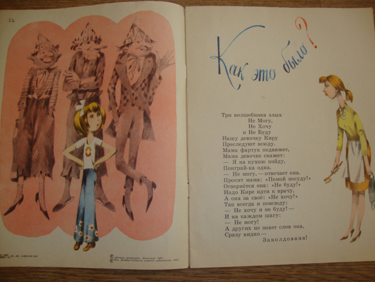 "Заколдованная девочка" -юмористическое стихотворение о девочке, которая не хотела ничего сама делать. И как родители справились с этим! Написано ленинградской поэтессой Надеждой Поляковой, впервые опубликовано в 1961г.
