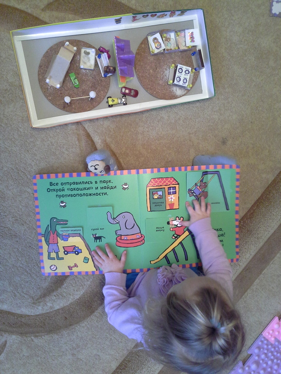 Эта книга тоже у нас в хитах! Ведь здесь окошки и весёлые задания! А какой двухлетний малыш не фанат окошек и весёлых заданий?))