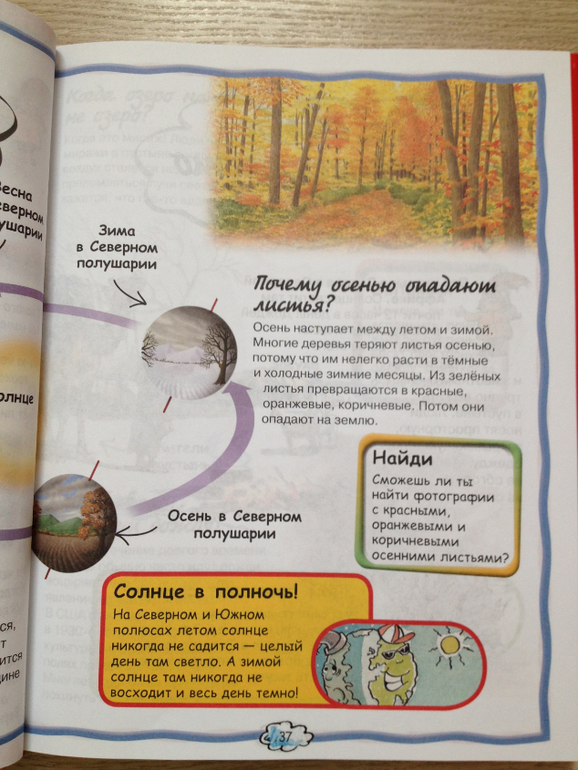 Я не в восторге. Да, информация хорошая. Да, картинки забавные и качественные. Очень много информации на самые разные темы. Но как-то не цепляет лично меня. К тексту прилагается задание сделать какой-то опыт и загадки. Нам подарили, поэтому лет до 4 наверно будет стоят грузом на полке.