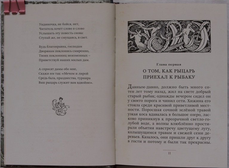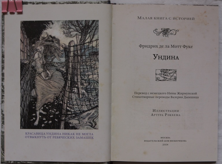 Впервые на русском языке книга вышла в блестящем стихотворном переводе В.А.Жуковского, который полностью затмил фигуру немецкого автора. Полтора века никто не пытался переводить "Ундину" в прозе. На русском языке в прозе "Ундина" появилась только в 1990 году от издательства "Наука", а в 2014 году у издательства ИД Мещерякова, за что ему большое спасибо, книга получилась достойной.
