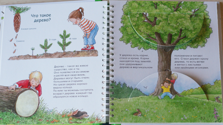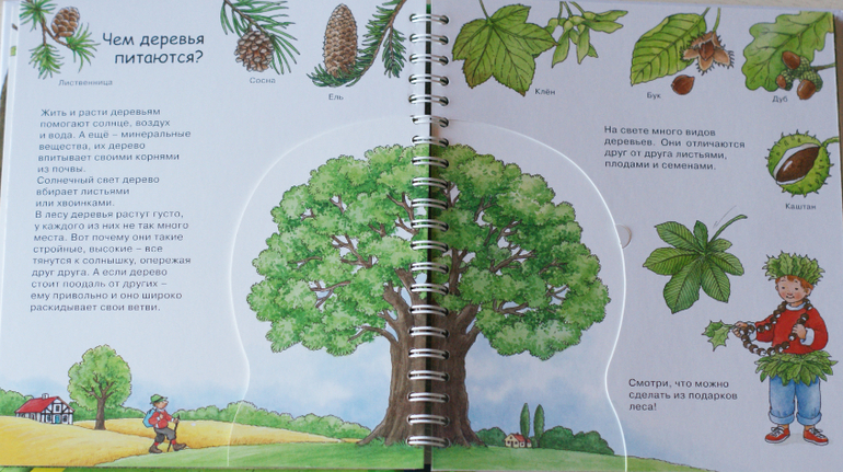 Книга изумительная! Рассказывает она о том, что такое лес, как растет дерево, чем оно питается, какие плоды у разных видов деревьев, кто живет в лесу. Очень интересно прочитать о том, что происходит ночью в лесу . Все это проиллюстрировано и дополнено интересными окошками.