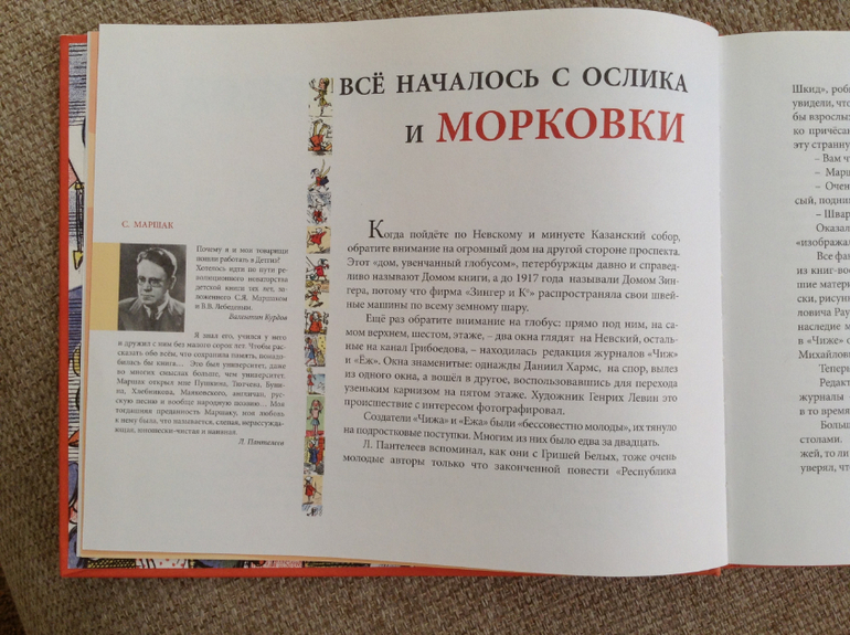 Книга была издана к 75-летию издательства Детгиз в благодарность создателям издательства. Она и для детского чтения и для взрослого. Для взрослых много изложено информации о создателях Детгиза, о художниках, поэтах, которые шли с готовыми рисунками или за новыми заказами в редакцию, а также приведены отрывки из писем и телефонных звонков читателей в редакцию, случаи из текущей рабочей деятельности создателей (Пантелеев, Маршак, Олейников, Житков, Хармс, Шварц, Введенский и др.)