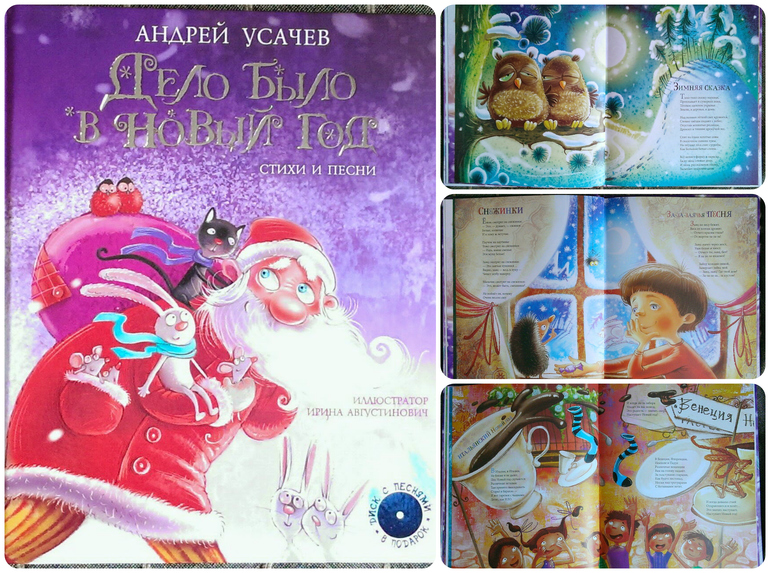 На книжку Усачёва мало подробных отзывов, хотя она в новогодних подборках часто мелькает, поэтому хотела про неё написать. Судя по всему, иллюстрации - это компьютерная графика. Меня это нисколько не смущает. Настроение у книги есть, оно определенно праздничное и без китча. Добавила сегодня фото на Лабиринт. Усачёв, на мой взгляд, поэт на любителя. Мне далеко не всё у него нравится, и не всё я читаю легко и с удовольствием. В этом сборнике есть несколько не моих стихов - их пропускаем. Остальное - здорово и идёт на ура.