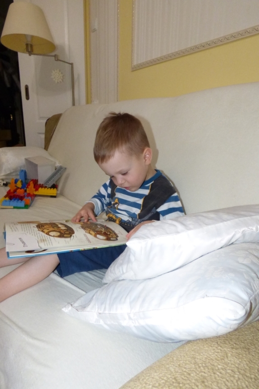 Ну а Гравитон, он хотел бы уже сейчас прочесть, но вот буквы очень маленькие и текста много :-))). Не смотря на "недостатки", он целый час сидел и изучал книгу. И все разговаривал с книгой и обещал, что через годик он ее прочтет, чтоб она не обижалась :-)))