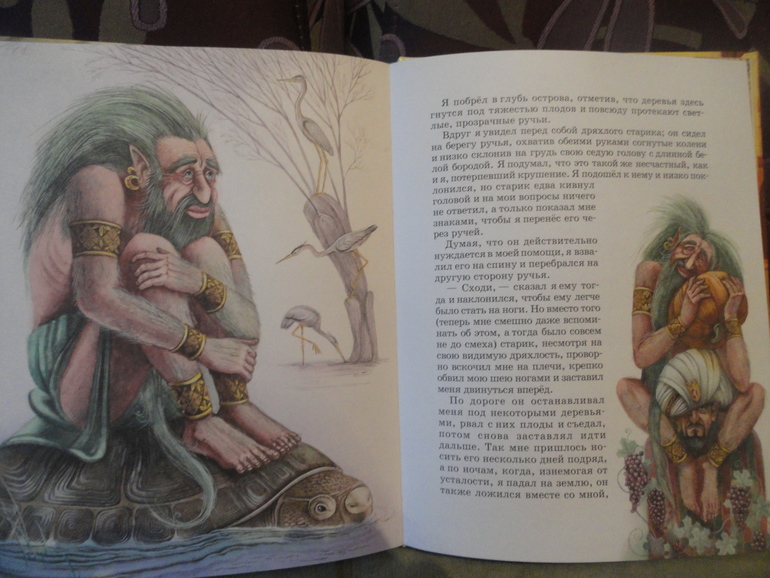 Все путешествия Синбада купила 8-летнему родственнику, для самостоятельного чтения, с хорошим шрифтом, ну и мальчишечья тема. Сын решил тоже ознакомиться, понравилась, но она на более младший возраст, как раз на 6-10 лет. Иллюстрации Митрофанова я думаю понравятся мальчику.