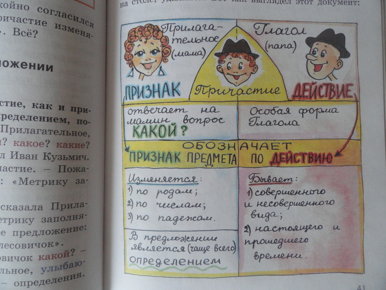 Привет, причастие!(Татьяна Рик) читали на фоне прохождения в школе темы причастия, чтобы закрепить тему. Хорошая книга, доступно объясняет трудный материал, много иллюстраций, схем, табличек для зрительного восприятия правил русского языка. Идея прекрасна, объяснить ребёнку не сухую теорию и правила, а путём увлекательной сказочной историей. Но эту тему проходят в 7 классе и можно было сюжет придумать менее малышковый, например что-то типа детектива "Пять похищенных монахов"Коваля, подросткам было бы интересней читать подобный сюжет. А так сын ворчал))), но читал.