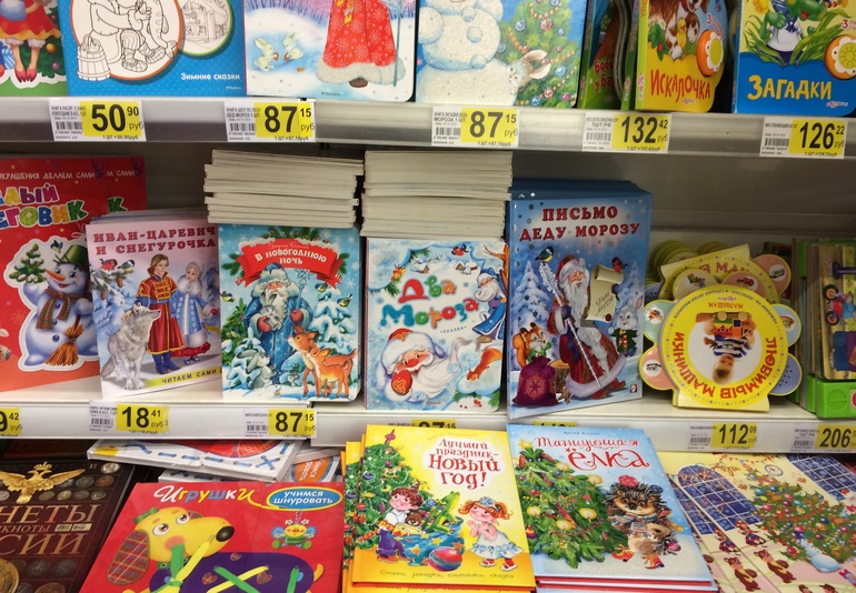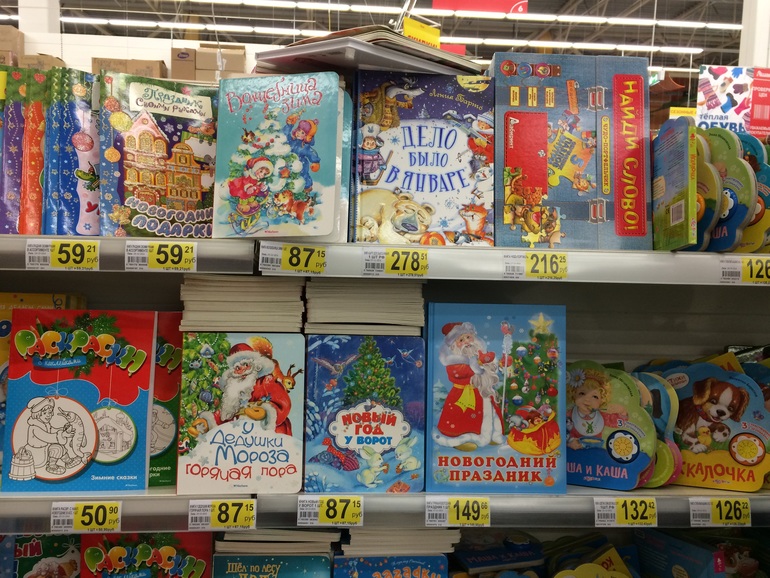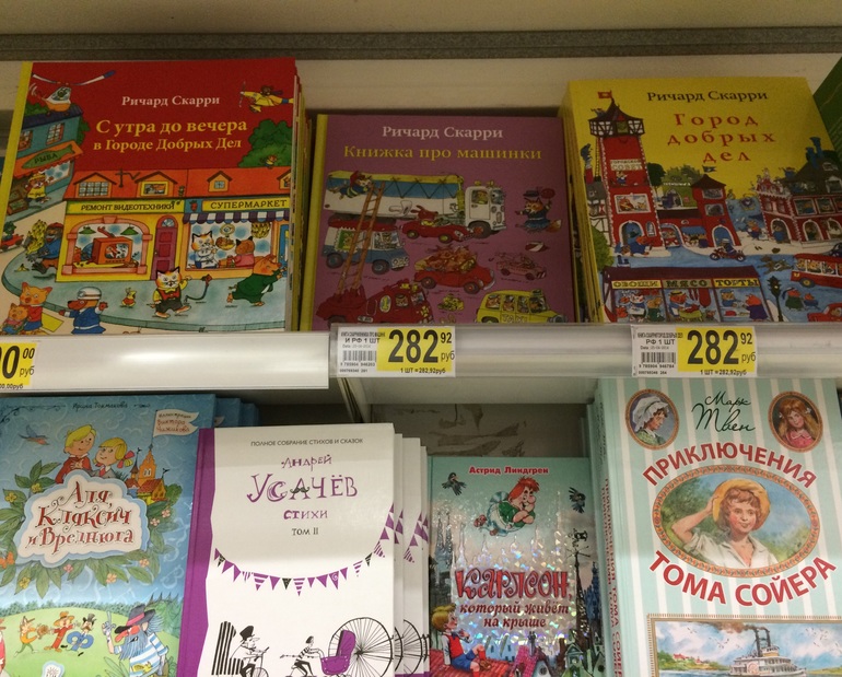 И как всегда в Ашанах, большой ассорт вот этого издательства, мы себе взяли для сада вот эти по 116 руб