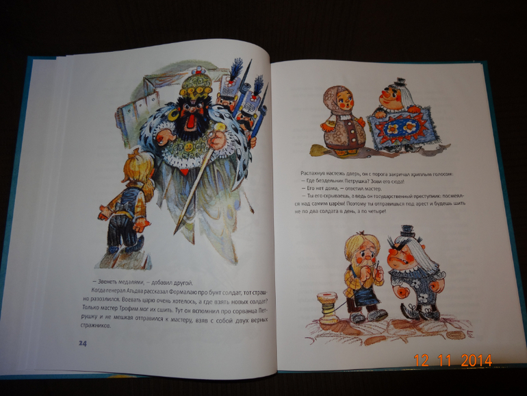 "Петрушка" весь в картинках, в "Айболите" 6 разворотов без картинок, но есть большие на весь разворот. Бумага тонковата, но в целом очень неплохо